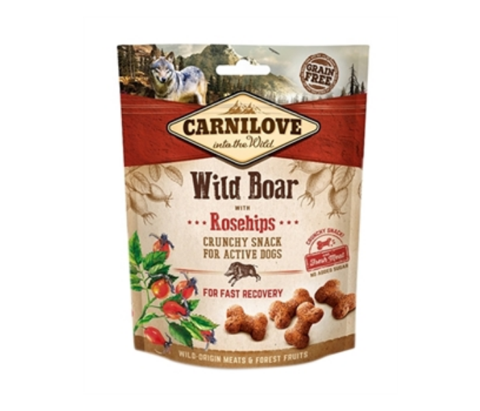De Carnilove Crunchy Snack Everzwijn & Rozenbottel is een heerlijke, natuurlijke traktatie voor honden van alle rassen. Deze graanvrije snack combineert wild everzwijnvlees met rozenbottel, een natuurlijke bron van vitamine C en antioxidanten die het immuunsysteem ondersteunen.