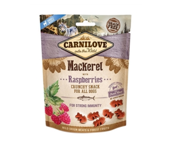 De Carnilove Crunchy Snack Makreel & Framboos is een heerlijke, natuurlijke traktatie voor honden van alle rassen. Deze graanvrije snack combineert verse makreel, rijk aan omega 3-vetzuren, met frisse frambozen die vol zitten met antioxidanten en vitamine C.